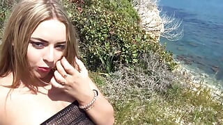 Hot Outdoor Blowjob & Cum Play With a Down-Jacket